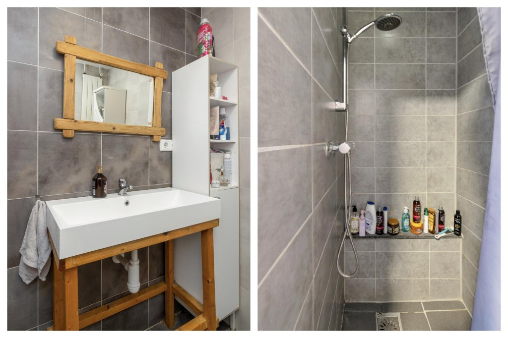 Upon entering, you arrive in the hall with access to all rooms. The hall provides access to two similar bedrooms and the living room. The pleasant L-shaped living room offers enough space for a comfortable sitting area and a dining area. Adjacent to this is the practical kitchen. The apartment has two bedrooms, one of which is ideal for use as a master bedroom and the other as a study or guest room. The bathroom has a shower, sink, and connection for a washing machine.