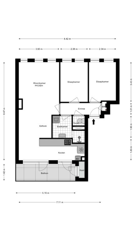 This neat two-room apartment with balcony and private storage room is located in a central and pleasant location in 's-Hertogenbosch. The property has a practical layout, has energy label B, and is therefore a great option for first-time buyers, singles, or couples.