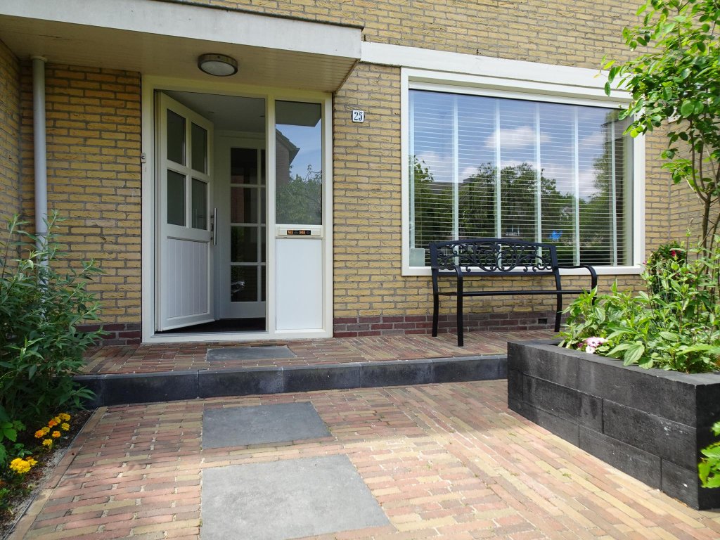 Through the well-maintained front garden you enter the entrance of the house. The entrance consists of a wardrobe space, meter cupboard and a toilet room with hanging closet and design sink.