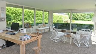 From the living kitchen you walk to the spacious living room with a gas fireplace and adjoining spacious conservatory with separate sliding doors, through the hall with separate toilet you enter the master bedroom with beautiful closet, air conditioning and luxurious bathroom en suite with a corner bath, double sink and separate shower.