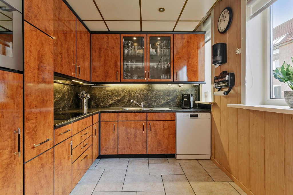 Enter, immediately on the right you will find the kitchen which is located on the street side, it is neat and fully equipped with new equipment that was installed between 2018/2020. The kitchen also has a suspended ceiling with spotlights.