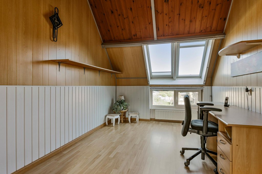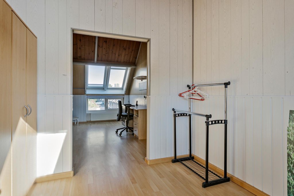 On the 2nd floor there is a washing/drying room, a storage/hobby room and bedroom 4/5, which have been joined together, creating an enormous spacious bedroom. The light is very good because there are 2 velux windows on both sides. With a simple intervention, this can be turned into 2 rooms again. The front hall of the 2nd Floor has a suspended ceiling with spotlights.