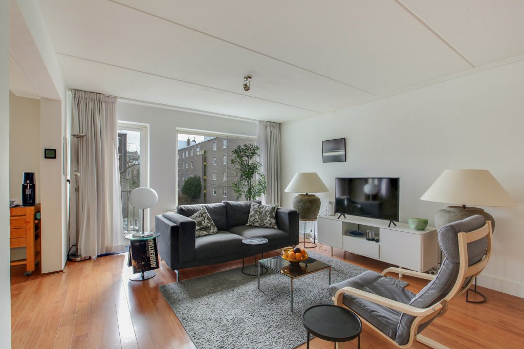 The bright living room has a view of the balcony. The balcony is situated on the south, so you can sit outside in April. If it gets too hot, there is an electric sunblind to keep the heat out.