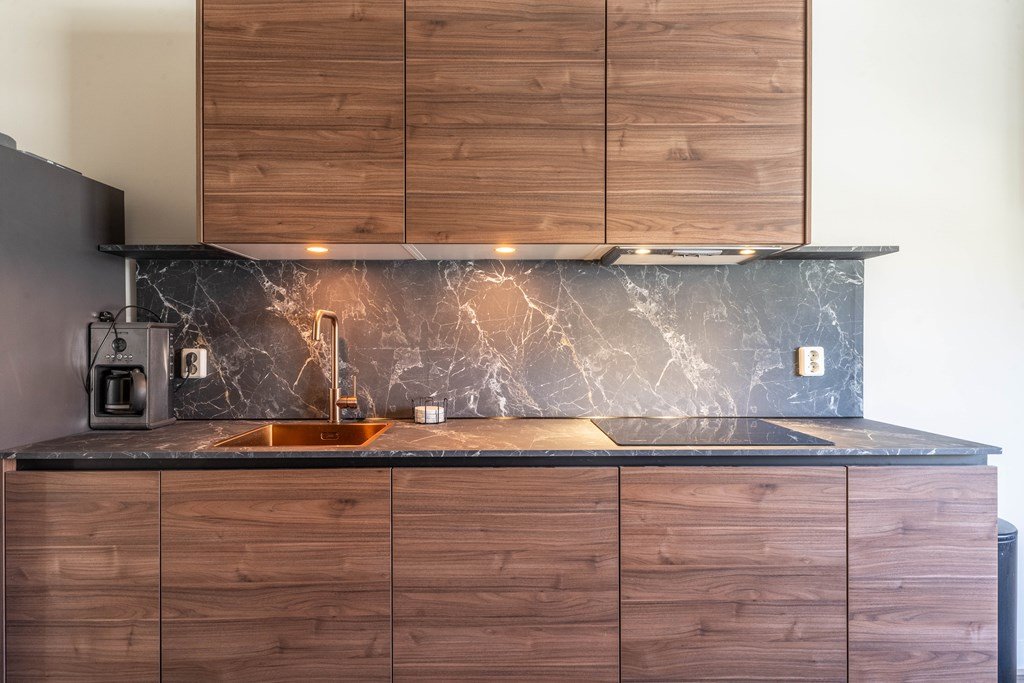 Upon entering the front door, a staircase leads you to the apartment's door at the second floor. Here, you step into a warm and welcoming living area, bathed in natural light, with a semi-open kitchen fully equipped with built-in appliances. French doors open directly from the kitchen onto a generous balcony that spans the full width of the apartment—perfectly positioned to enjoy morning coffee or evening drinks in the sun thanks to its northwest-facing orientation.