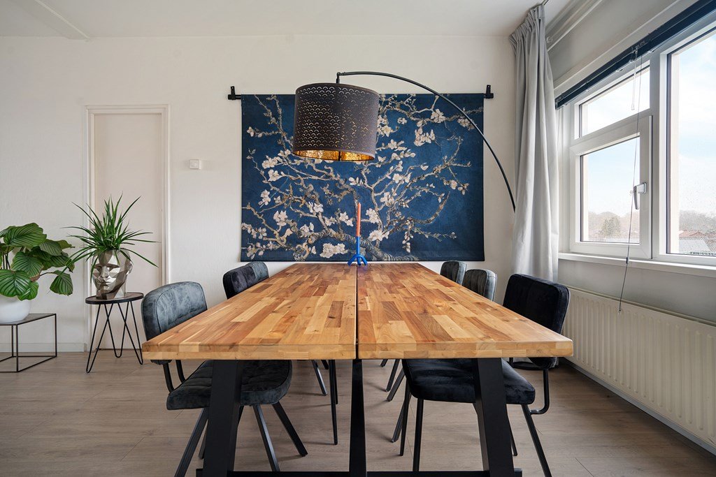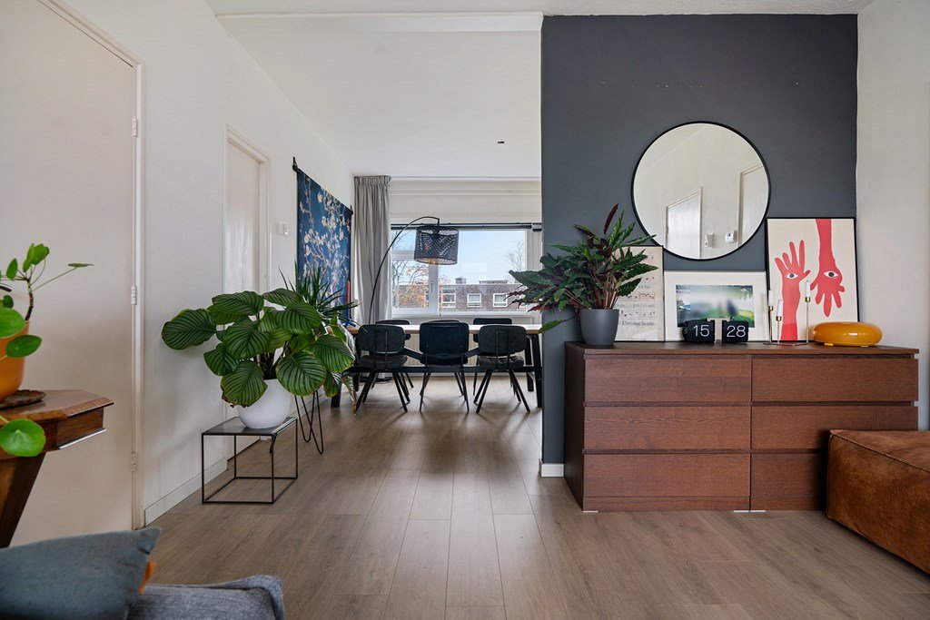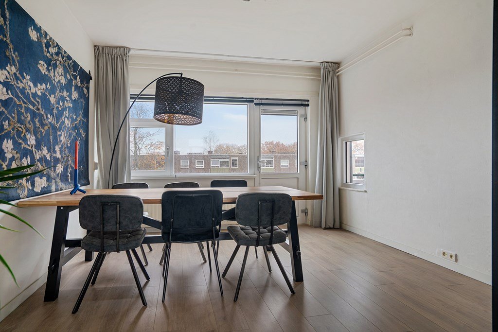 Located at Germanenlaan 196, this well-maintained 3-room apartment, originally a 4-room layout, is situated on the top floor of a well-kept complex. The property is fully equipped with uPVC window frames and HR++ double glazing, and features two balconies, two well-proportioned bedrooms, and a through-living room with adjoining dining area.
