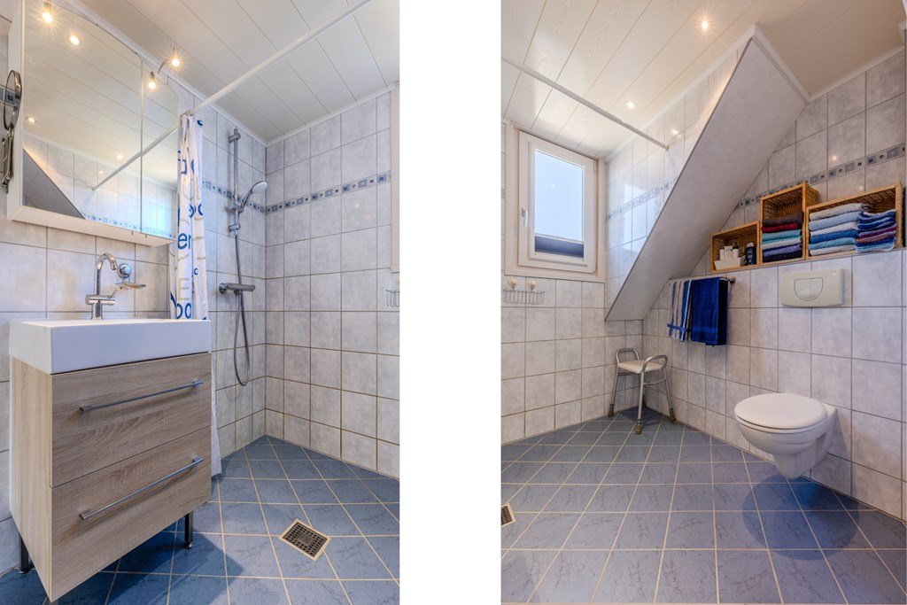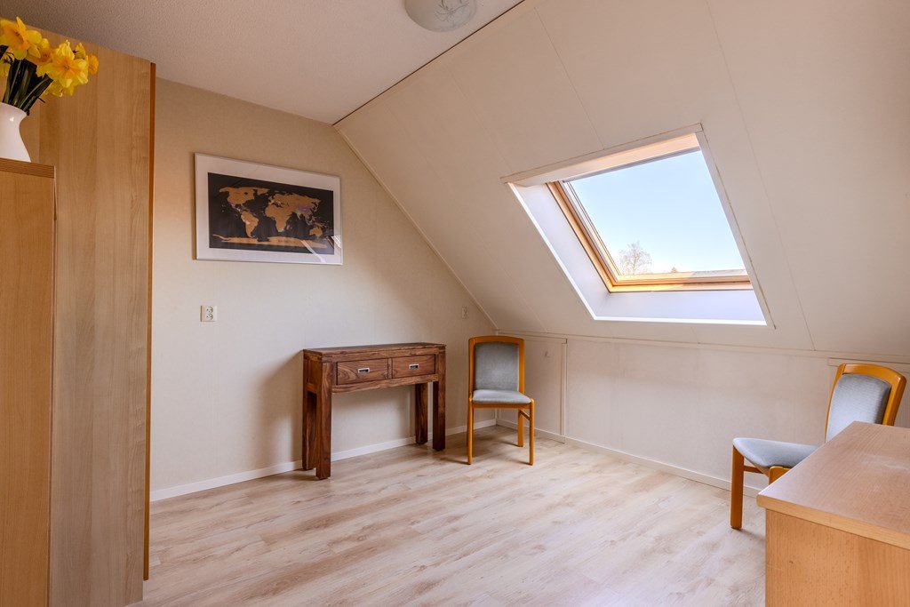 Three well-kept bedrooms and a neat bathroom with dormer window, walk-in shower, washbasin unit and a second toilet.