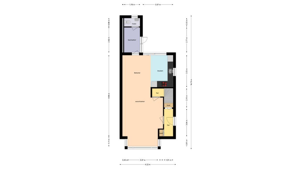 Entrance with wardrobe, meter cupboard and practical pantry. The attractive living room has an oak floor, sleek wall finish and a charming bay window at the front. At the rear is the spacious kitchen with corner unit and complete built-in appliances. Through the large plastic sliding door you have direct access to the sunny garden.