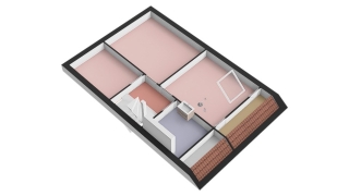 Fixed staircase to the landing with washing machine connection and storage space. The spacious attic room has a dormer window, knee walls and a storage loft.
