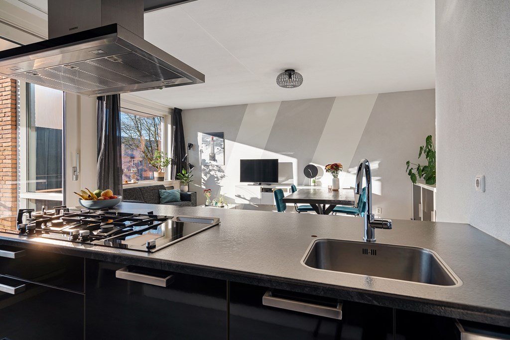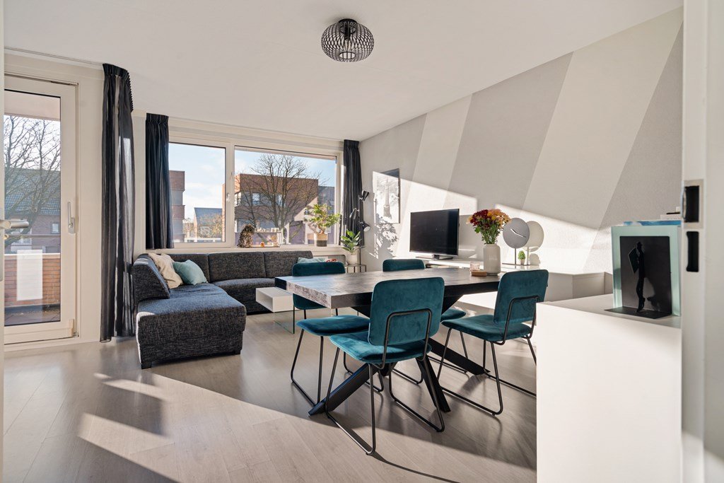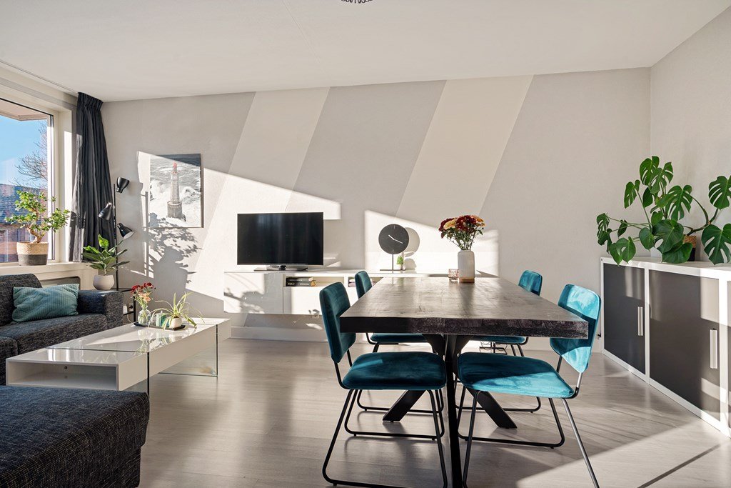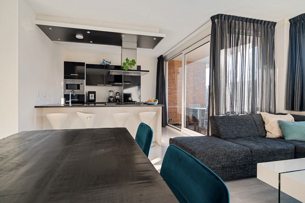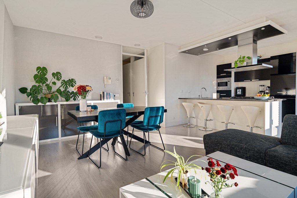 In a quiet and green area, directly next to the Zuiderpark, you will find this modern and excellently maintained apartment on the first residential floor of a well-kept complex. The apartment features a bright living room, a kitchen with a kitchen island and various built-in appliances, two bedrooms, a spacious south-facing balcony, and a private parking space. A comfortable place to live, with all amenities within easy reach.