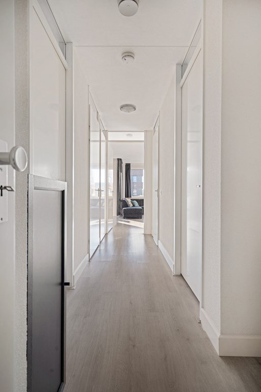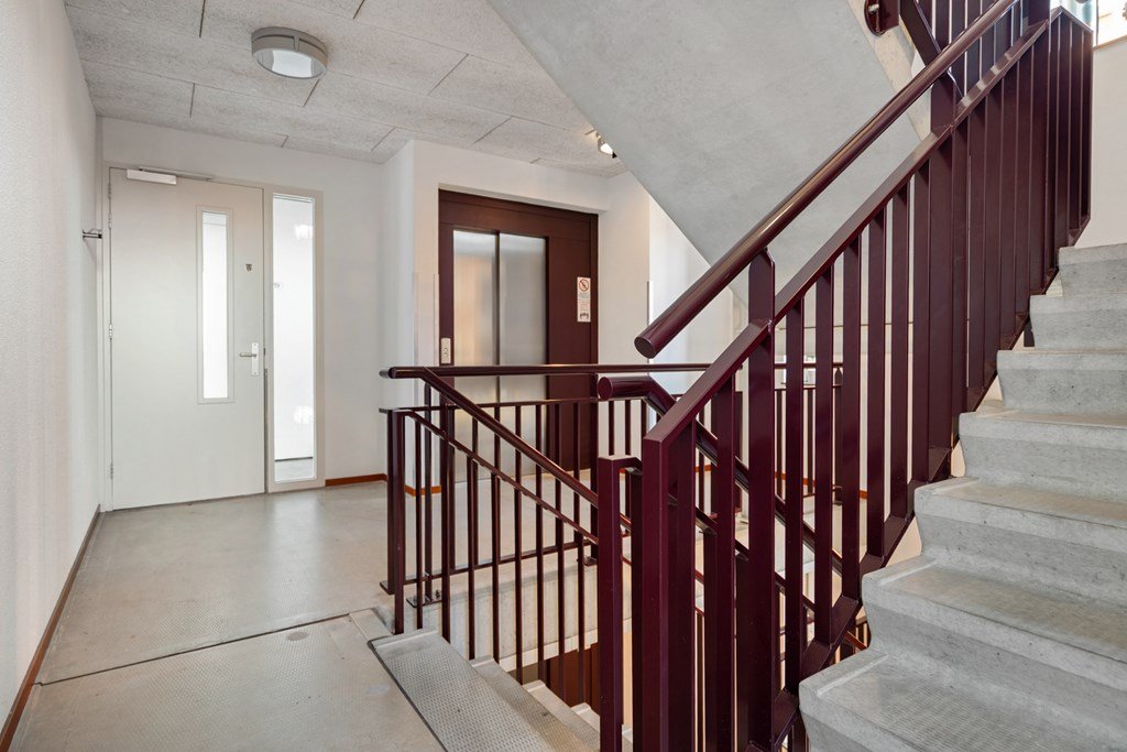 Upon entering the building, you are welcomed by a spacious and well-maintained communal entrance on the ground floor, equipped with both a passenger lift and a convenient bicycle lift. From here, the apartment is easily accessible.