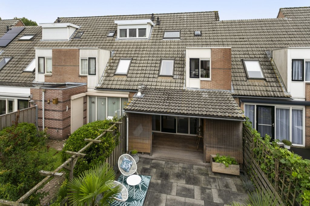 Both the well-kept front and back gardens are maintenance-friendly and equipped with sufficient lighting. In the backyard (facing west!) A veranda with tiled roof has been added to the house. An additional covered storage space has also been created at the shed. This now serves as a bicycle shed. The shed is now used as a workshop.