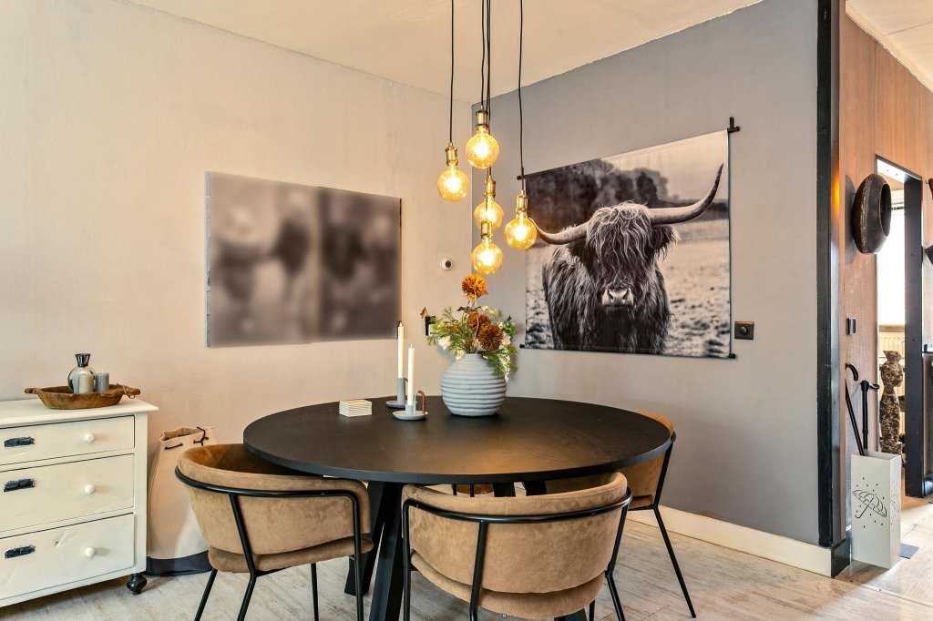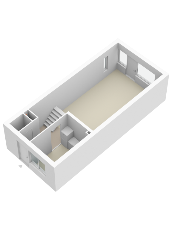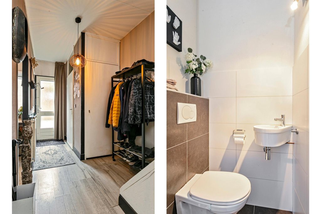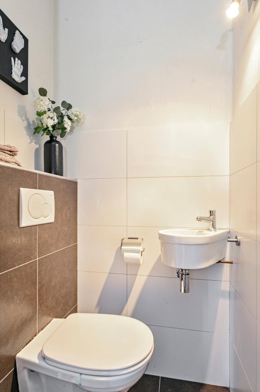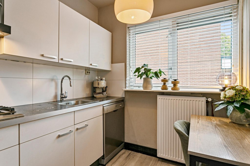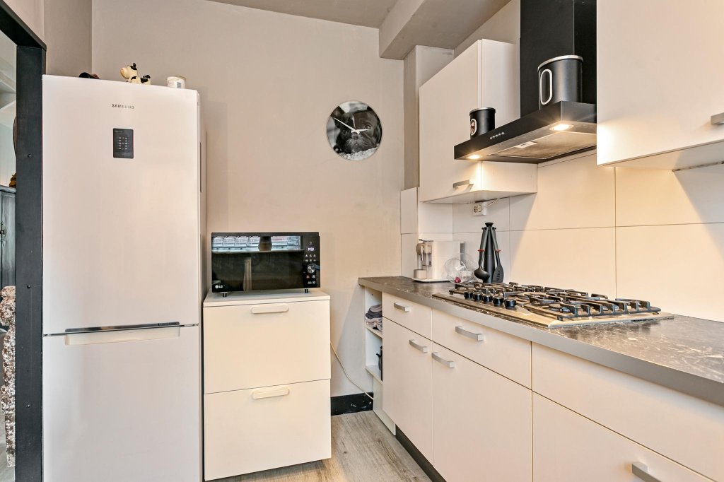 Ground floor: entrance, hall with modernized toilet, meter cupboard and staircase. Close neat kitchen at the front. The kitchen is neat, in light colors and equipped with a gas hob and extractor.
