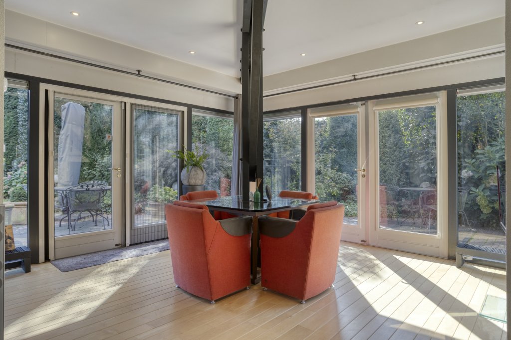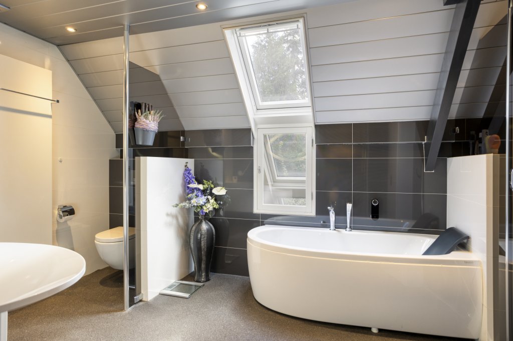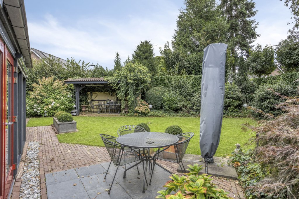 The villa is surrounded by a beautifully landscaped garden, in which the house blends into the landscape. The lawn, the various terraces and the gazebo with room for six people invite you to enjoy the outdoors in all seasons. Here you can enjoy peace, privacy and natural surroundings. There is a gazebo of approximately 25 m² with a dining and lounge area equipped with heating.
