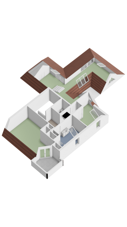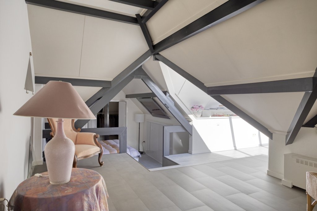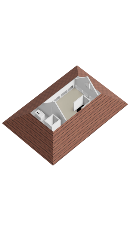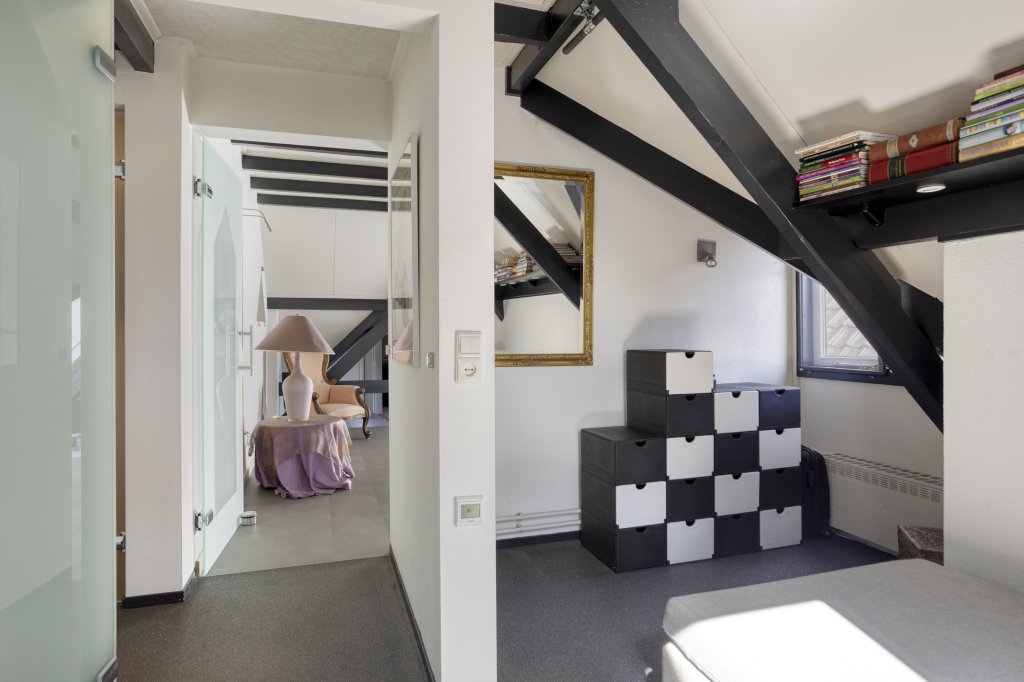 The landing leads to the attic, which offers a surprising amount of space. In addition to the technical installations, there is enough space here for storage or even to create an extra bedroom or hobby room.