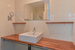 First floor: The landing, 3 (bed) rooms, 1 of which is very spacious (over 16 m2), and a bathroom with walk-in shower.